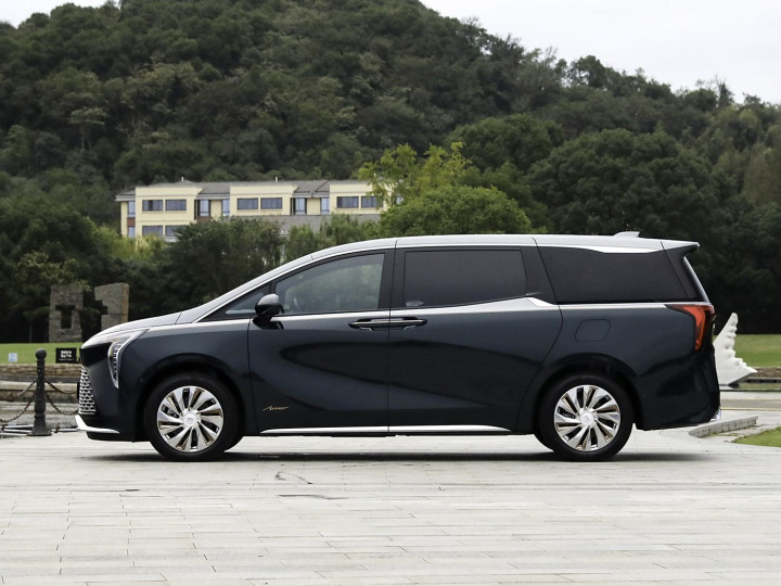 再来看车身侧面部分,前门板镶嵌艾维亚专属徽标,强化身份辨识度。车身造型整体修长而饱满,侧窗采用隐私玻璃设计,C柱略微倾斜的线条营造出运动感。车门腰线更是突出而饱满,结合中央内凹的造型,形成了出色的层次感,而多辐式镀铬轮毂(可选装20英寸刀锋样式)、隐藏式门把手及迎宾光毯,夜间投射2.5米长光幕地毯,仪式感十足。车身尺寸方面,长宽高5230/1980/1867mm,轴距3130mm。
